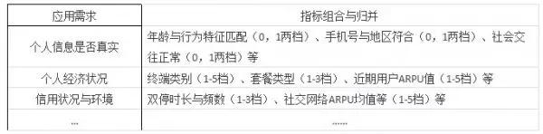 3.2根據(jù)征信應(yīng)用的情景需求,將手機(jī)用戶畫像的量化具體指標(biāo)進(jìn)行重新歸并與組合,如表3所示。