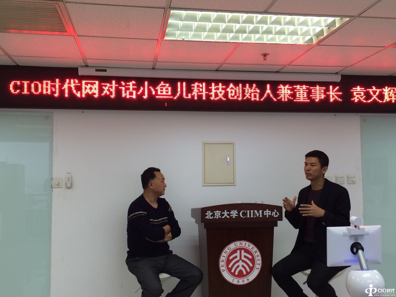 CIO時(shí)代網(wǎng)總編朱啟明(左)和小魚兒科技聯(lián)合創(chuàng)始人兼董事長(zhǎng)袁文輝(右)