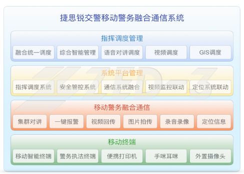 為了促進移動警務的發(fā)展,北京捷思銳科技股份有限公司提出并設計了“交警移動警務融合通信解決方案”,采用行業(yè)專用移動警務通信終端,滿足一線出警時對多媒體通訊和多業(yè)務功能的需要,為現(xiàn)場執(zhí)法取證提供可靠的支撐保障,使出警更加快捷、直觀、可靠。