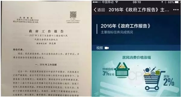 兩會期間,官媒都憋足了勁發(fā)出大招,從光明網(wǎng)的網(wǎng)紅設(shè)備“鋼鐵俠”,到央廣推出的模擬朋友圈H5和人民日報(bào)刷屏的“兩會喊你加入群聊”H5,這屆官媒真的挺會玩,全方位體現(xiàn)出了互聯(lián)網(wǎng)思維。 與此同時(shí),二維碼也上了政府工作報(bào)告的首頁。用數(shù)據(jù)可視化的多媒體形式,將報(bào)告里的內(nèi)容直觀呈現(xiàn),也方便分享傳播。
