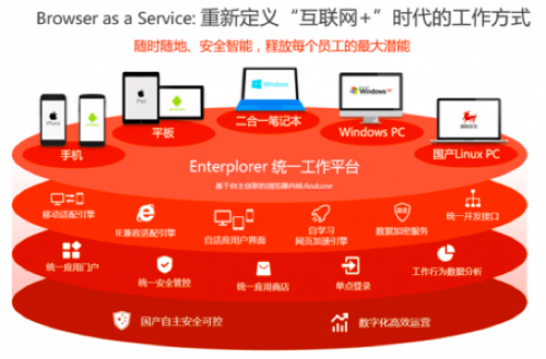 事實(shí)上,這種基于HTML5和企業(yè)瀏覽器為企業(yè)提供整體解決方案的方式,不僅能為各類基于B/S架構(gòu)的應(yīng)用提供入口搜索管理功能,還將能夠集合各類SaaS 應(yīng)用,從而實(shí)現(xiàn)企業(yè)對(duì)各類應(yīng)用和服務(wù)的安全高效管理,提高企業(yè)運(yùn)營(yíng)效率。這種創(chuàng)新的企業(yè)平臺(tái)化建設(shè)的實(shí)踐,將會(huì)成為未來(lái)企業(yè)信息化建設(shè)的新方向。