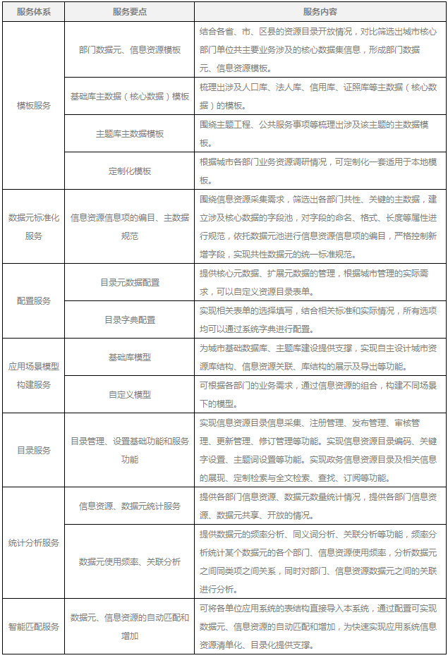 本系統(tǒng)從信息資源業(yè)務出發(fā),圍繞信息資源業(yè)務及相應的軟硬件,構(gòu)建城市信息資產(chǎn)清單,定位業(yè)務—信息資源—應用系統(tǒng)—服務器—機房(云)。同時結(jié)合信息資源提供梳理服務、標準規(guī)范制定、績效考核指標設(shè)計等系列咨詢服務。