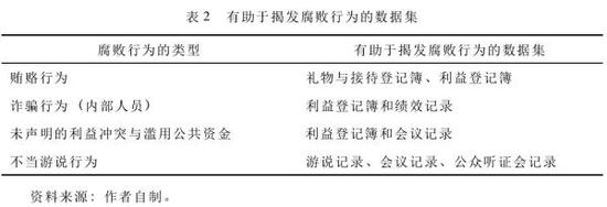 綜上所述,不同的腐敗行為被揭露的方式不同,開放數(shù)據(jù)在揭露腐敗案件方面目前仍起著非常有限的作用。但是,通過分析,我們看到,開放數(shù)據(jù)在防治腐敗方面存在著巨大的潛力,數(shù)據(jù)的開放將會對預(yù)防和發(fā)現(xiàn)腐敗行為起到重要作用,而且不同的腐敗行為與某些特定數(shù)據(jù)存在著緊密的聯(lián)系。(參見表2)