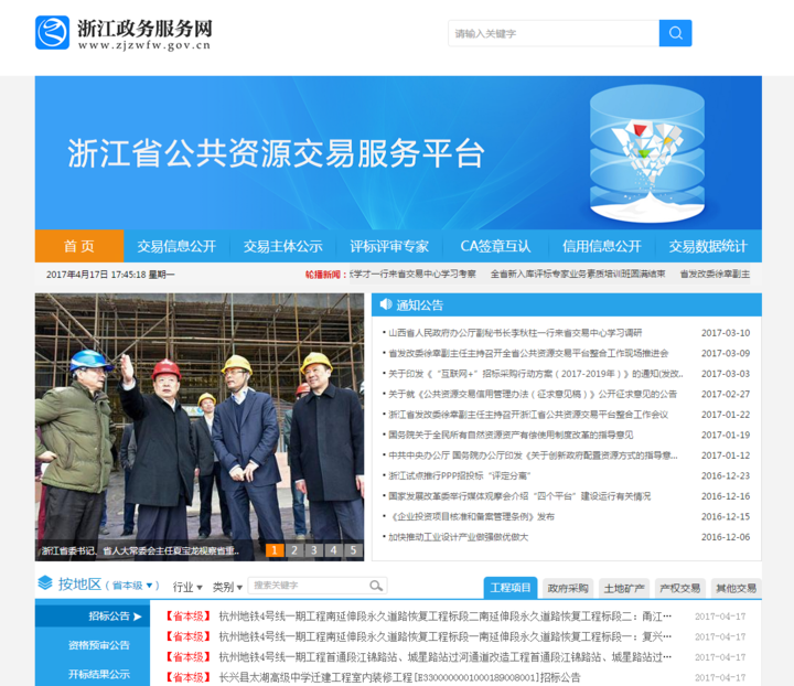 近日,浙江省公共資源交易服務(wù)平臺正式對接浙江政務(wù)服務(wù)網(wǎng),用戶打開浙江政務(wù)服務(wù)網(wǎng)首頁即可查閱全省公共資源交易信息,平臺目前已融合省重點(diǎn)建設(shè)工程招標(biāo)投標(biāo)、政府采購、礦業(yè)權(quán)出讓、國有產(chǎn)權(quán)交易4大省級交易平臺以及11個設(shè)區(qū)市、33個縣(市、區(qū))交易平臺。