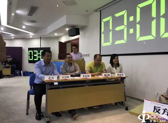 在茶歇和抽獎(jiǎng)環(huán)節(jié)過后,由福建CIO網(wǎng)CEO謝磊擔(dān)任主持人,藍(lán)月亮IT總監(jiān)、首屆華南CIO班學(xué)員周國(guó)英,興華財(cái)富集團(tuán)CIO、首屆北大互聯(lián)網(wǎng)+研修班學(xué)員趙耿,深圳美云智數(shù)科技智造云事業(yè)部首席專家兼智造公有云總監(jiān)王興旺為正方隊(duì)員,廈門本能管家總經(jīng)理、第二期金融CIO班學(xué)員楊稅令,欣賀股份有限公司CIO李宏陽(yáng),九牧廚衛(wèi)五星定制業(yè)務(wù)主管王春玉為反方隊(duì)員,就辯論題目“CIO要不要關(guān)注客戶滿意度”,進(jìn)行了一場(chǎng)無與倫比的精彩辯論。雙方隊(duì)員都站在自身的立場(chǎng)發(fā)表觀點(diǎn),唇槍舌劍,針鋒相對(duì),將會(huì)議活動(dòng)的氛圍推向了高潮。最后,由CIO時(shí)代學(xué)院院長(zhǎng)、中國(guó)新一代IT產(chǎn)業(yè)推進(jìn)聯(lián)盟秘書長(zhǎng)姚樂,順豐集團(tuán)信息總監(jiān)、第十二屆北大CIO班學(xué)員傅國(guó)華,福建CIO網(wǎng)副總盧凡擔(dān)任評(píng)審并進(jìn)行了點(diǎn)評(píng),一致同意正方贏得了本場(chǎng)辯論賽。