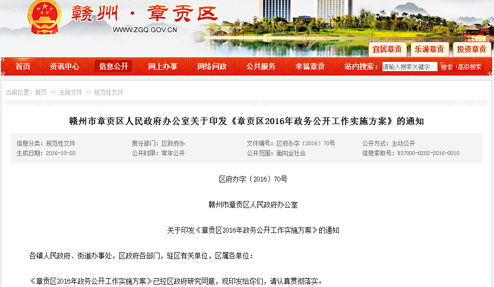 章貢區(qū)政府領(lǐng)導(dǎo)高度重視政務(wù)公開工作,印發(fā)了《章貢區(qū)2016年政務(wù)公開工作實(shí)施方案》,依托政府門戶網(wǎng)站、章貢手機(jī)報(bào)、微信公眾號(hào)等平臺(tái),積極推進(jìn)市場(chǎng)監(jiān)管、經(jīng)濟(jì)社會(huì)政策、政府投資重大建設(shè)項(xiàng)目、公共資源配置、減稅降費(fèi)、國(guó)有企業(yè)運(yùn)營(yíng)監(jiān)管等政務(wù)信息公開,推動(dòng)政府決策公開、政策執(zhí)行和落實(shí)情況公開、預(yù)決算公開,主動(dòng)做好政策解讀,積極回應(yīng)社會(huì)關(guān)切,增強(qiáng)公開實(shí)效,提升政府的透明度和公信力。