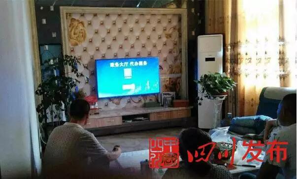 △邛崍群眾在家使用電視機機頂盒里的互動電視端政府門戶網(wǎng)站預約上門辦事。