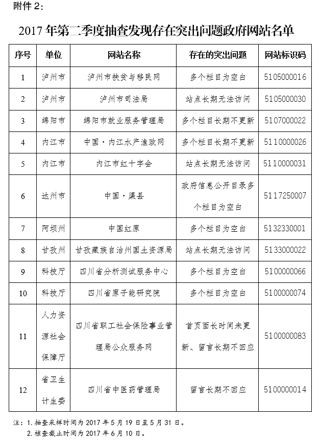 2.2017年第二季度抽查發(fā)現(xiàn)存在突出問(wèn)題政府網(wǎng)站名單