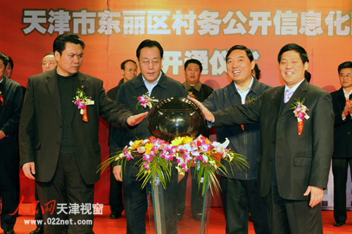 圖為東麗區(qū)村務公開信息化網(wǎng)站開通儀式,日前(2月21日)在區(qū)廣電局演播大廳舉行
