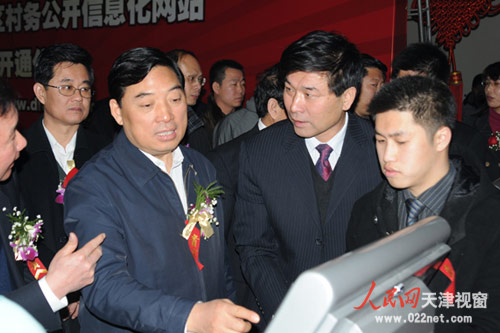 出席開通儀式的還有:市委副秘書長葉禮敏,市委組織部副部長梁寶明,新華社天津分社黨組書記、社長陳乃進,市農(nóng)委書記、主任、市村務公開協(xié)調(diào)小組副組長張俊濱以及區(qū)領導秘長榮、尚德來、弭尚華、孫富霞、劉金鐘、鄭會營、杜要武、軋乃利、樊延生、徐樹青等。