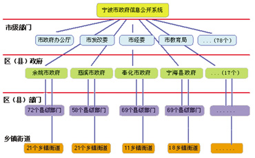 2007年《中華人民共和國政府信息公開條例》(以下簡稱《條例》)正式頒布后,各級政府加強了政府信息公開工作?!稐l例》對政府信息的定義以及政府信息公開的主體、主管機構(gòu)、范圍、方式以及監(jiān)督保障等都作了明確規(guī)定,而對公開目錄的具體格式、體系定義、部署規(guī)劃等并沒有建立統(tǒng)一標(biāo)準(zhǔn),各地政府都在積極探索適合本單位的具體做法和方式。2009年國務(wù)院辦公廳頒布了《政府信息公開目錄系統(tǒng)實施指引》,為逐步形成統(tǒng)一的政府信息公開平臺建設(shè)提供了重要參考。寧波市在充分調(diào)研的基礎(chǔ)上,考慮到政府信息公開平臺在管理使用主體、目錄構(gòu)架方式、信息規(guī)范格式、索引號功能應(yīng)用、信息展現(xiàn)形式、數(shù)據(jù)交換整合等方面與網(wǎng)站內(nèi)容管理系統(tǒng)存在明顯差異,決定將政府信息公開平臺獨立出來開發(fā)建設(shè)。本文以寧波市建設(shè)實踐為例,通過對信息公開系統(tǒng)總體框架和功能的分析,重點探討市級政府信息公開系統(tǒng)的建設(shè)模式。