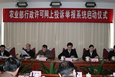 農(nóng)業(yè)部副部長尹成杰在啟動儀式上介紹,為深化行政審批制度改革,規(guī)范政府職能和行政行為,從源頭上預(yù)防和懲治腐敗,2007年,農(nóng)業(yè)部通過深入調(diào)研,設(shè)計開發(fā)了行政許可網(wǎng)上投訴舉報系統(tǒng)。該系統(tǒng)軟件自動設(shè)定瀏覽和處理權(quán)限,具有收集、匯總、反饋投訴舉報信息等功能,確保相關(guān)信息得到及時處理,維護(hù)投訴舉報人合法權(quán)益。社會公眾只要登陸農(nóng)業(yè)部門戶網(wǎng)站—中國農(nóng)業(yè)信息網(wǎng),即可通過“網(wǎng)上投訴舉報”欄目,隨時對農(nóng)業(yè)部行政許可工作中存在的問題進(jìn)行投訴舉報,相關(guān)信息即時自動轉(zhuǎn)入行政許可網(wǎng)上投訴舉報系統(tǒng)。農(nóng)業(yè)部有關(guān)司局在對投訴舉報信息分類整理后,根據(jù)職責(zé)分工,在規(guī)定時限內(nèi),以電話、信函或電子郵件等方式將處理結(jié)果反饋投訴舉報人。