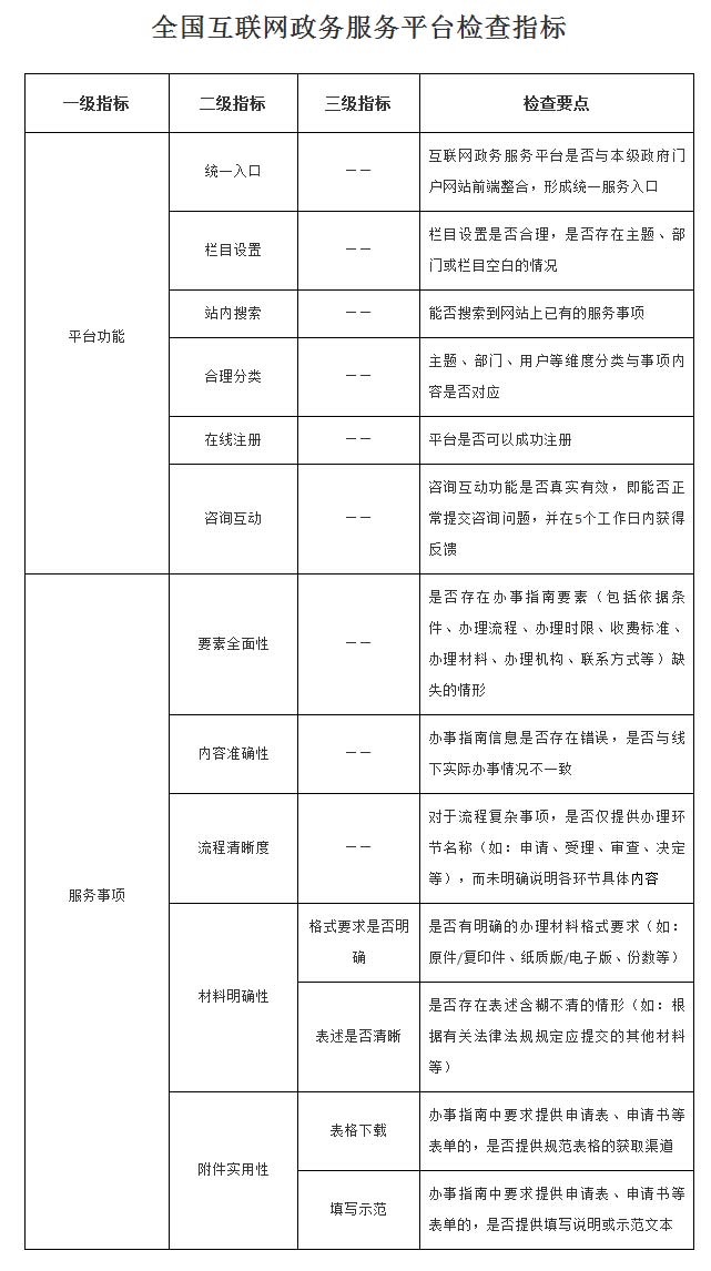 附件:全國(guó)互聯(lián)網(wǎng)政務(wù)服務(wù)平臺(tái)檢查指標(biāo)