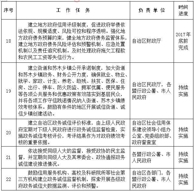加強政務(wù)誠信建設(shè)實施方案重點任務(wù)分工及進(jìn)度安排表