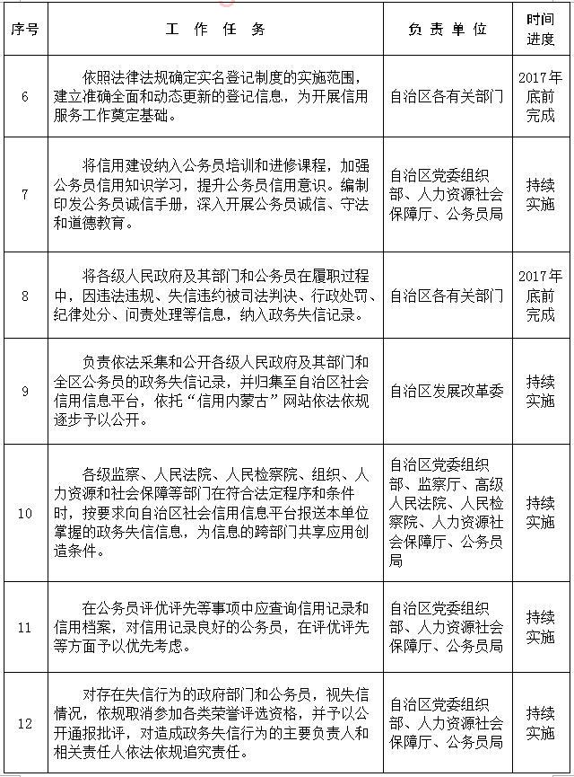 3.建立政務(wù)失信記錄的歸集機制。自治區(qū)發(fā)展改革委負(fù)責(zé)依法采集和公開各級人民政府及其部門和全區(qū)公務(wù)員的政務(wù)失信記錄,并歸集至自治區(qū)社會信用信息平臺,依托“信用內(nèi)蒙古”網(wǎng)站依法依規(guī)逐步予以公開。