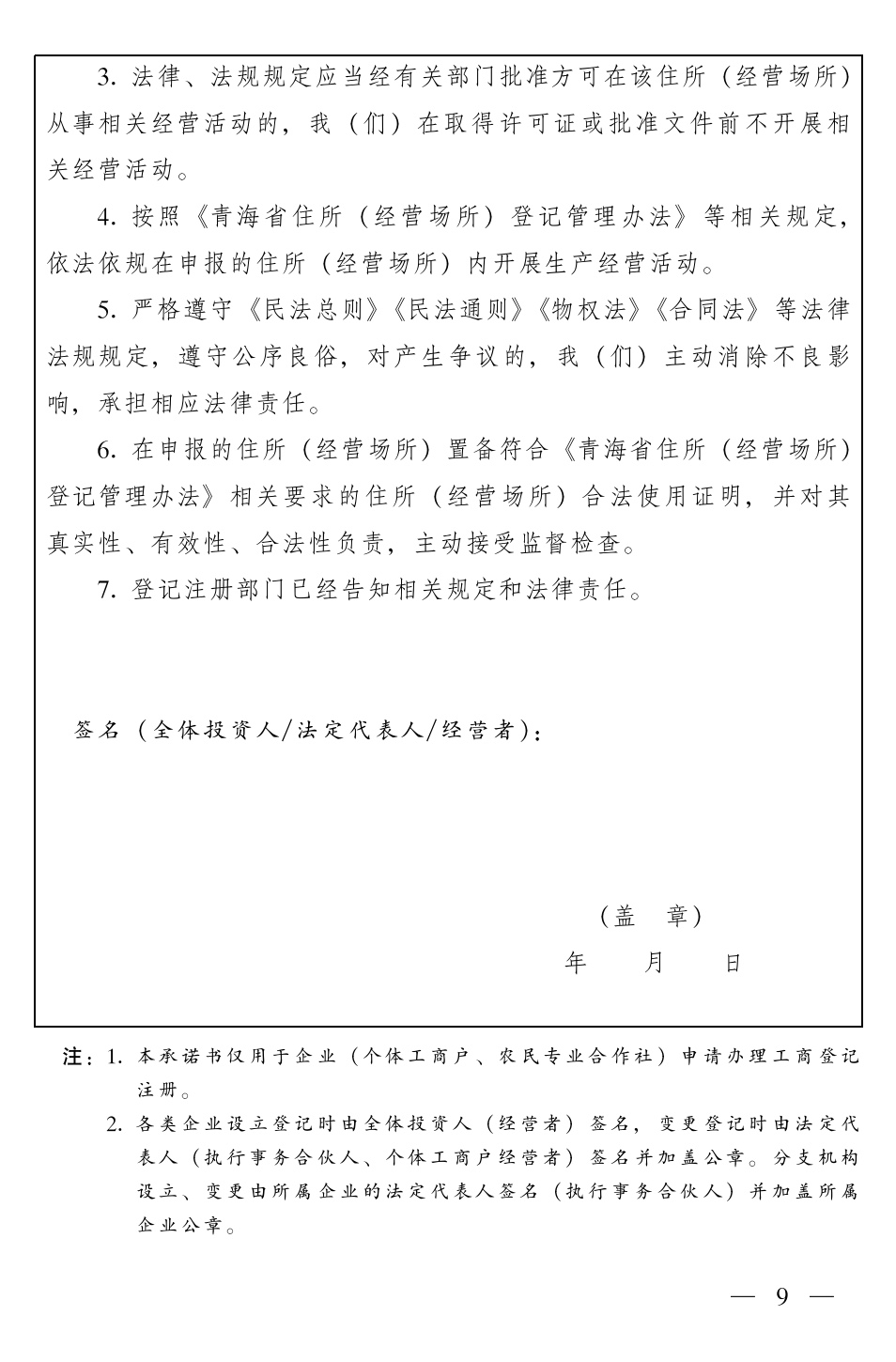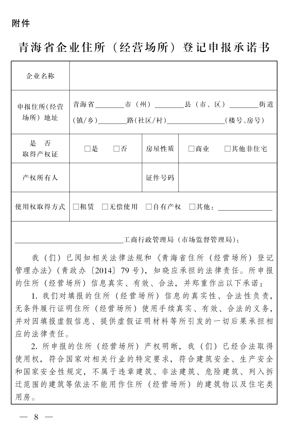 附件:青海省企業(yè)住所(經(jīng)營場所)登記申報承諾書