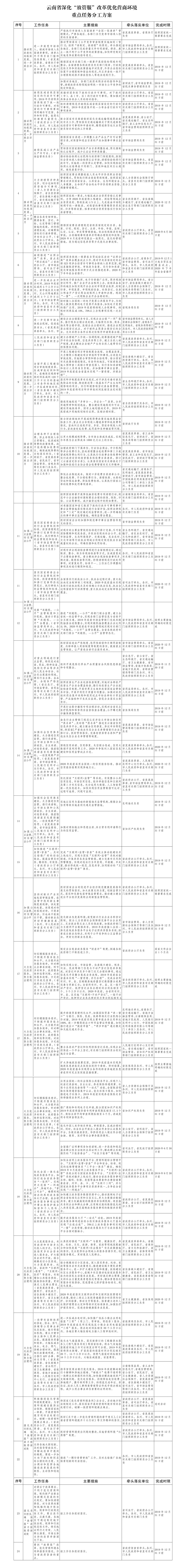 為貫徹落實(shí)《國務(wù)院辦公廳關(guān)于印發(fā)全國深化“放管服”改革優(yōu)化營商環(huán)境電視電話會(huì)議重點(diǎn)任務(wù)分工方案的通知》(國辦發(fā)〔2019〕39號(hào))和全省深化“放管服”改革優(yōu)化營商環(huán)境電視電話會(huì)議精神,經(jīng)省人民政府同意,現(xiàn)將《云南省深化“放管服”改革優(yōu)化營商環(huán)境重點(diǎn)任務(wù)分工方案》印發(fā)給你們,請認(rèn)真貫徹執(zhí)行。