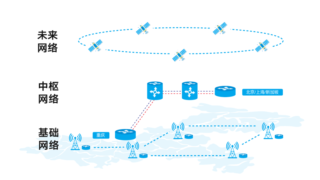 扎實推進5G、千兆光纖、IPv6等基礎(chǔ)網(wǎng)絡(luò)建設(shè),強化國家級互聯(lián)網(wǎng)骨干直聯(lián)點、中新(重慶)國際互聯(lián)網(wǎng)數(shù)據(jù)專用通道等關(guān)鍵樞紐設(shè)施布局,提前規(guī)劃部署低軌衛(wèi)星移動通信、空間互聯(lián)網(wǎng)和量子通信網(wǎng)等未來網(wǎng)絡(luò)設(shè)施,打造泛在互聯(lián)立體網(wǎng)絡(luò)體系。到2022年,5G網(wǎng)絡(luò)重點區(qū)域覆蓋率達80%以上,工業(yè)互聯(lián)網(wǎng)標識解析體系形成“1+N”發(fā)展格局,城市物聯(lián)感知、國際數(shù)據(jù)專用通道能力進一步提升,太空互聯(lián)網(wǎng)基地有序運營,基本建成“空天地一體化新型網(wǎng)絡(luò)體系”,奠定萬物互聯(lián)新基礎(chǔ)。
