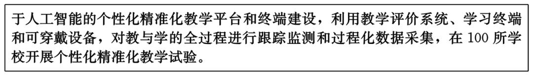 3.智能教育。積極推進(jìn)基于教育大數(shù)據(jù)的智能產(chǎn)品與服務(wù)在教育教學(xué)、教育管理、教育評(píng)價(jià)、生活服務(wù)等方面的全流程應(yīng)用,推動(dòng)教育模式變革和生態(tài)重構(gòu)。推進(jìn)智慧校園建設(shè),構(gòu)建以學(xué)習(xí)者為中心的智能化教育教學(xué)環(huán)境。推進(jìn)虛擬仿真實(shí)驗(yàn)教學(xué),加快建設(shè)在線智能教室、智能實(shí)驗(yàn)室、虛擬工廠(醫(yī)院)等智能學(xué)習(xí)空間。推進(jìn)基于人工智能的精準(zhǔn)化教學(xué)和個(gè)性化學(xué)習(xí),推動(dòng)智能教學(xué)助手和智能學(xué)伴應(yīng)用,提高教與學(xué)的效率。開展智慧教育示范區(qū)創(chuàng)建和智能教育試點(diǎn)示范學(xué)校建設(shè),支持武漢市建設(shè)國(guó)家智慧教育示范區(qū)。