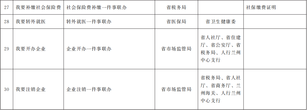 省級第一批“一件事一次辦”事項目錄(30項)