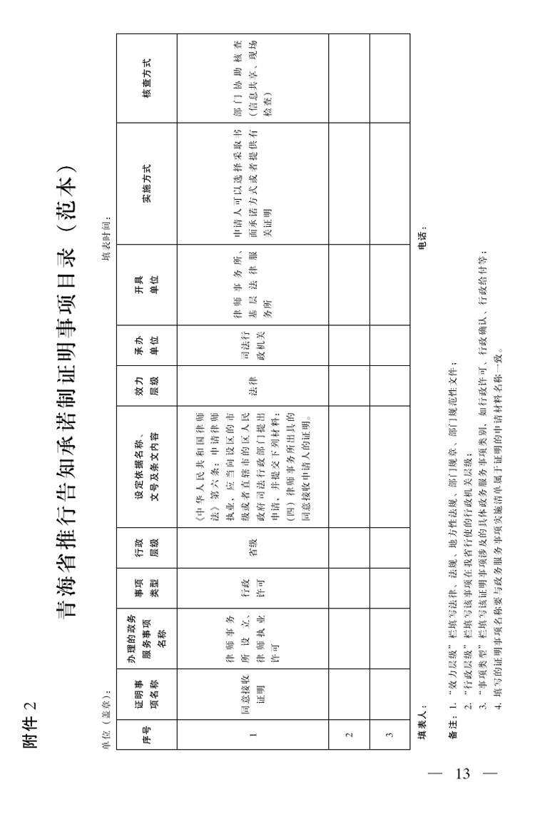 2.青海省推行告知承諾制證明事項目錄(范本)