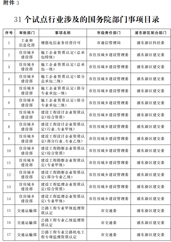 3.31個(gè)試點(diǎn)行業(yè)涉及的國(guó)務(wù)院部門事項(xiàng)目錄