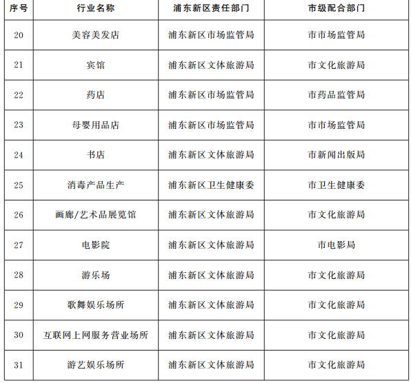 1.建立行業(yè)綜合監(jiān)管制度。建立健全各負(fù)其責(zé)、協(xié)同高效的行業(yè)綜合監(jiān)管制度,研究制定各行業(yè)事中事后監(jiān)管細(xì)則,理順監(jiān)管職責(zé),強(qiáng)化信息共享,加強(qiáng)監(jiān)管協(xié)作,明確市場(chǎng)主體退出機(jī)制。(牽頭單位:浦東新區(qū)政府。配合單位:市有關(guān)部門)