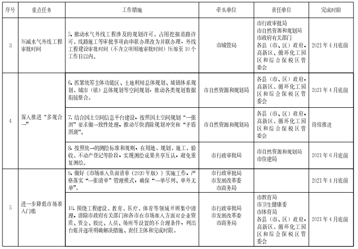 ?。ㄈ簻p水氣外線工程審批時間。推動水氣外線工程涉及的規(guī)劃許可、占用挖掘道路許可、線路施工等審批事項(xiàng)由串聯(lián)辦理改為并聯(lián)辦理,外線工程建設(shè)審批時間(不含立項(xiàng)用地審批時間)壓縮至10個工作日以內(nèi)。