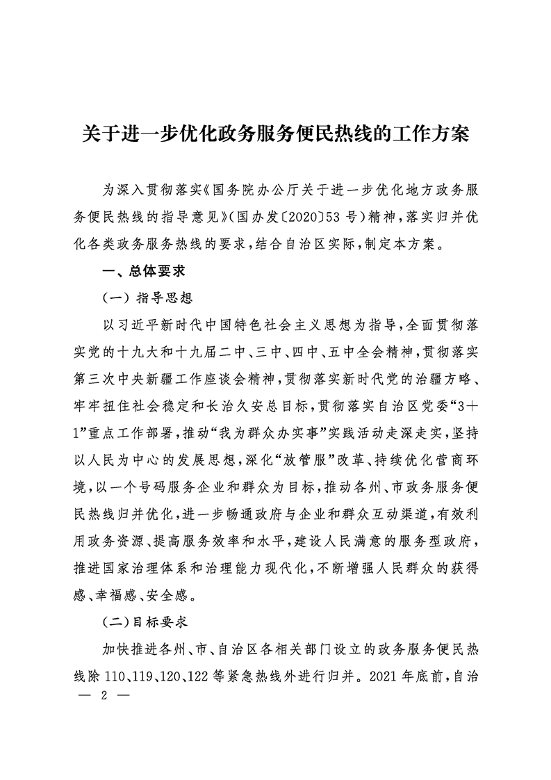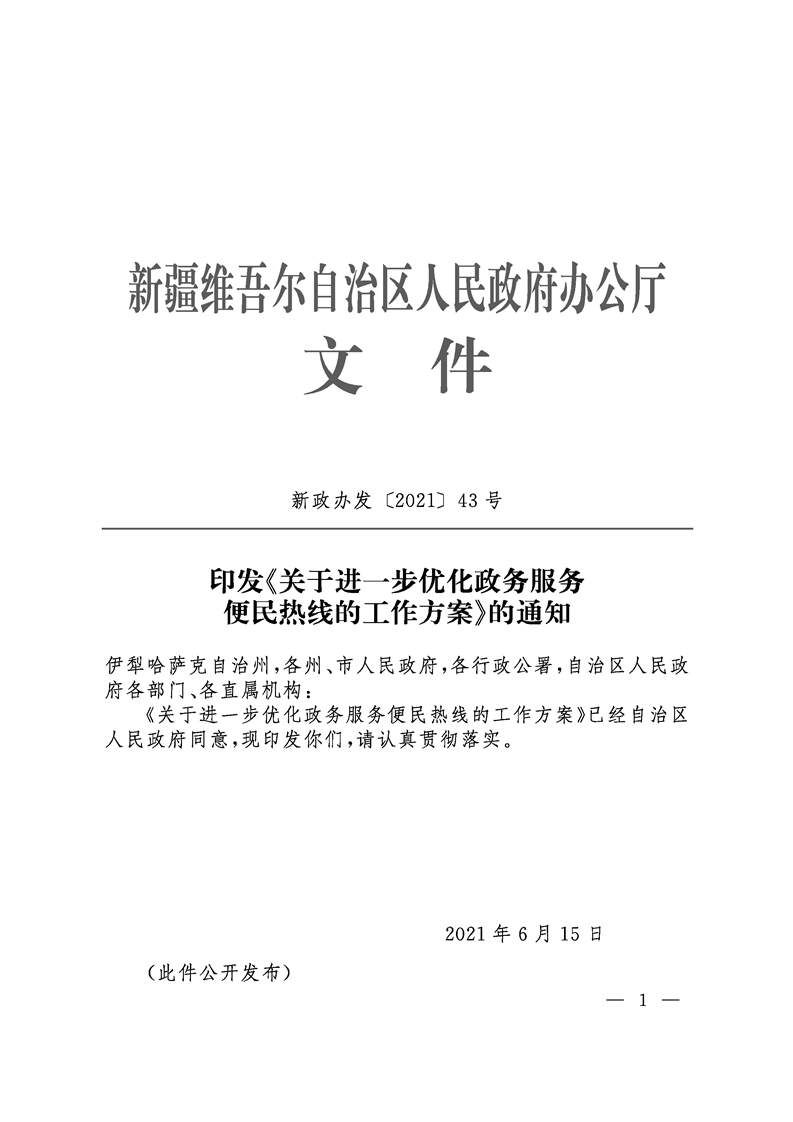 新疆維吾爾自治區(qū)人民政府辦公廳印發(fā)《關(guān)于進(jìn)一步優(yōu)化政務(wù)服務(wù)便民熱線的工作方案》的通知