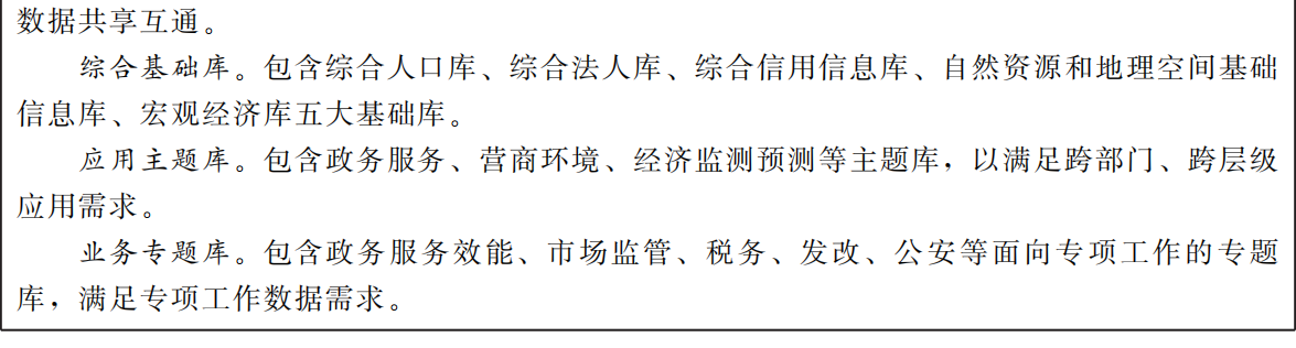 建設(shè)數(shù)據(jù)資產(chǎn)管理庫(kù)。推動(dòng)各級(jí)各部門政務(wù)數(shù)據(jù)資源向大數(shù)據(jù)中心匯聚,根據(jù)統(tǒng)一標(biāo)準(zhǔn)規(guī)范,構(gòu)建綜合人口庫(kù)、綜合法人庫(kù)、綜合信用信息庫(kù)、自然資源和地理空間基礎(chǔ)信息庫(kù)、宏觀經(jīng)濟(jì)庫(kù)五大基礎(chǔ)庫(kù),構(gòu)建事項(xiàng)庫(kù)、辦件庫(kù)和材料庫(kù)等主題庫(kù)及“省內(nèi)通辦”“跨省通辦”“一件事一次辦”等專題庫(kù)。提升數(shù)據(jù)共享效率,優(yōu)化辦事流程,滿足不動(dòng)產(chǎn)登記、社會(huì)保障、戶籍辦理、企業(yè)設(shè)立變更、準(zhǔn)營(yíng)準(zhǔn)辦等重點(diǎn)領(lǐng)域,以及人口、法人、教育、婚姻、生育、住房等普遍性數(shù)據(jù)需求。