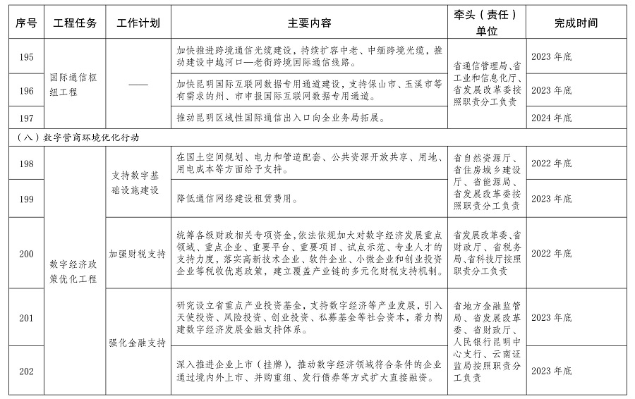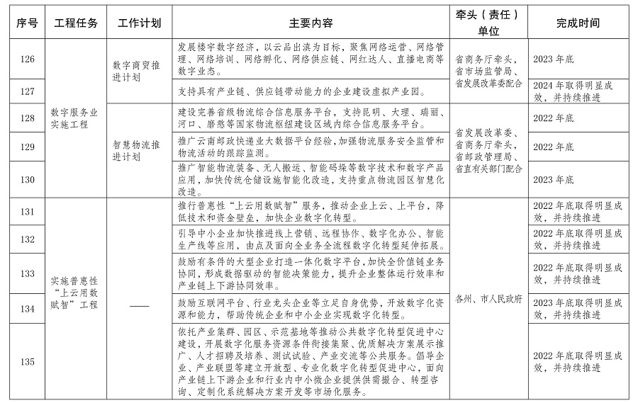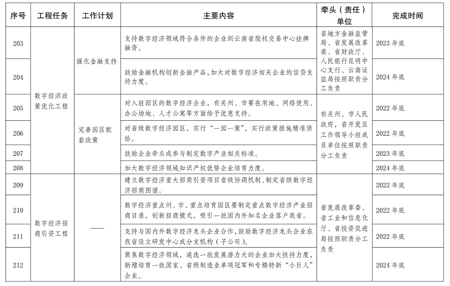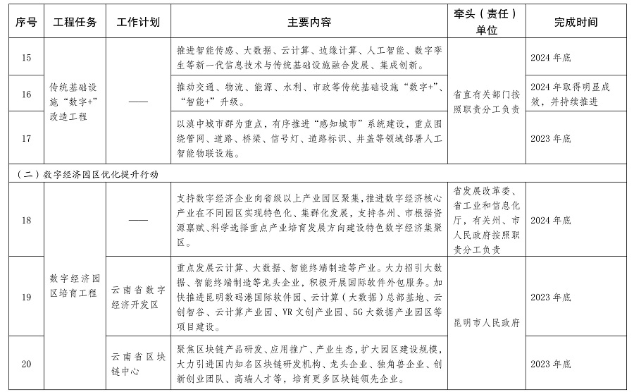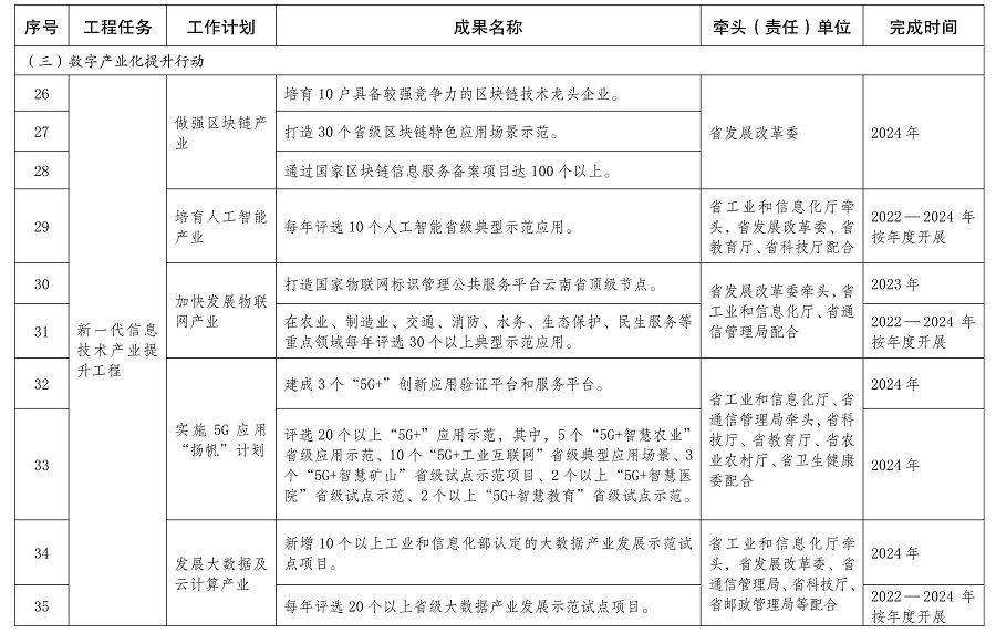 附件:1.云南省數(shù)字經(jīng)濟(jì)發(fā)展三年行動方案(2022—2024年)任務(wù)清單
