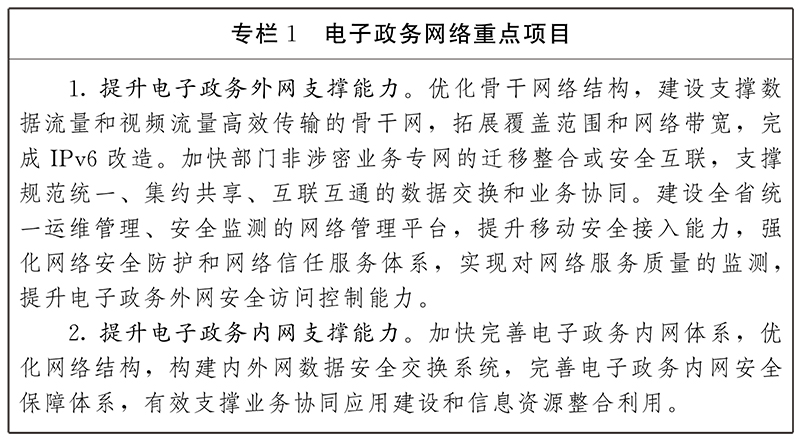 建成“橫向到邊、縱向到底”、支持IPv6(互聯(lián)網(wǎng)協(xié)議第六版)的電子政務(wù)外網(wǎng),同步建設(shè)網(wǎng)絡(luò)安全基礎(chǔ)設(shè)施,形成全省架構(gòu)統(tǒng)一、運(yùn)行高效、安全可靠、彈性調(diào)度的新型電子政務(wù)外網(wǎng)體系,推進(jìn)5G(第五代移動(dòng)通信技術(shù))、區(qū)塊鏈等新技術(shù)在電子政務(wù)外網(wǎng)領(lǐng)域應(yīng)用,有效支撐跨層級(jí)、跨區(qū)域、跨部門的網(wǎng)絡(luò)互通、數(shù)據(jù)共享、應(yīng)用協(xié)同。拓展電子政務(wù)外網(wǎng)覆蓋范圍、加快網(wǎng)絡(luò)帶寬擴(kuò)容,逐步實(shí)現(xiàn)萬兆到州市、千兆到縣市區(qū)、百兆到鄉(xiāng)鎮(zhèn)(街道)全覆蓋,村(社區(qū))按需接入,2025年底實(shí)現(xiàn)80%行政村覆蓋;推動(dòng)各地各部門按照“應(yīng)接盡接”原則接入電子政務(wù)外網(wǎng)。提升電子政務(wù)內(nèi)網(wǎng)支撐能力,對(duì)政務(wù)內(nèi)網(wǎng)骨干鏈路帶寬進(jìn)行擴(kuò)容,按需開展縣級(jí)以下部門安全接入政務(wù)內(nèi)網(wǎng),完善電子政務(wù)內(nèi)網(wǎng)綜合運(yùn)維管理體系,提升運(yùn)維保障能力。強(qiáng)化電子政務(wù)網(wǎng)絡(luò)綜合安全防護(hù),健全統(tǒng)一信任服務(wù)體系,推進(jìn)電子政務(wù)內(nèi)網(wǎng)、外網(wǎng)間數(shù)據(jù)安全交換。加快推進(jìn)部門業(yè)務(wù)專網(wǎng)(含國家部委業(yè)務(wù)專網(wǎng)的省級(jí)及以下部分)向電子政務(wù)內(nèi)網(wǎng)、外網(wǎng)遷移整合或安全互聯(lián)。