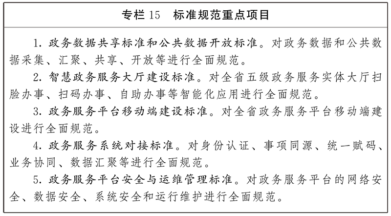 2.制定政務(wù)服務(wù)業(yè)務(wù)標(biāo)準(zhǔn)。研究制定政務(wù)服務(wù)事項(xiàng)標(biāo)準(zhǔn)化、智能政務(wù)服務(wù)大廳建設(shè)、政務(wù)服務(wù)移動(dòng)端建設(shè)、政務(wù)服務(wù)系統(tǒng)對(duì)接等標(biāo)準(zhǔn)規(guī)范。制定政務(wù)服務(wù)大廳業(yè)務(wù)手冊(cè)、綜合窗口行為規(guī)范、“跨省通辦”操作規(guī)程等,提升政務(wù)服務(wù)標(biāo)準(zhǔn)化、規(guī)范化、便利化水平。