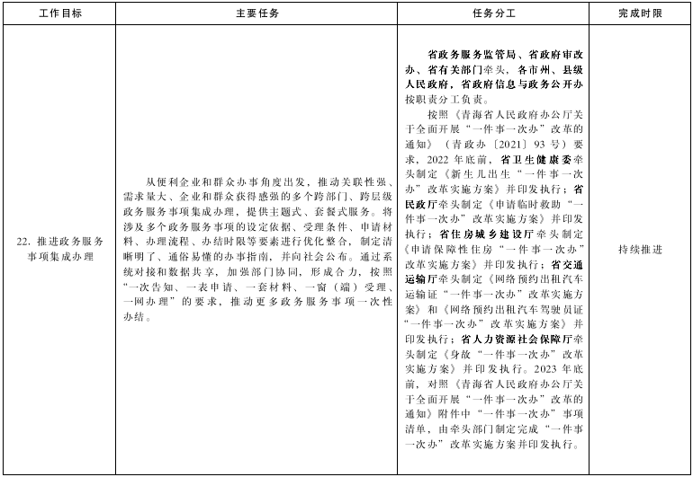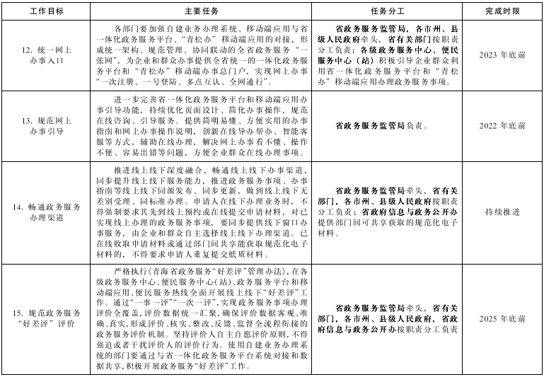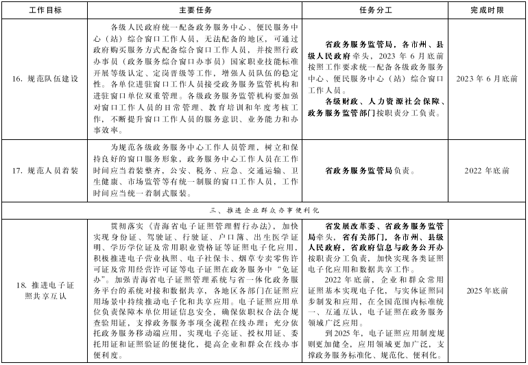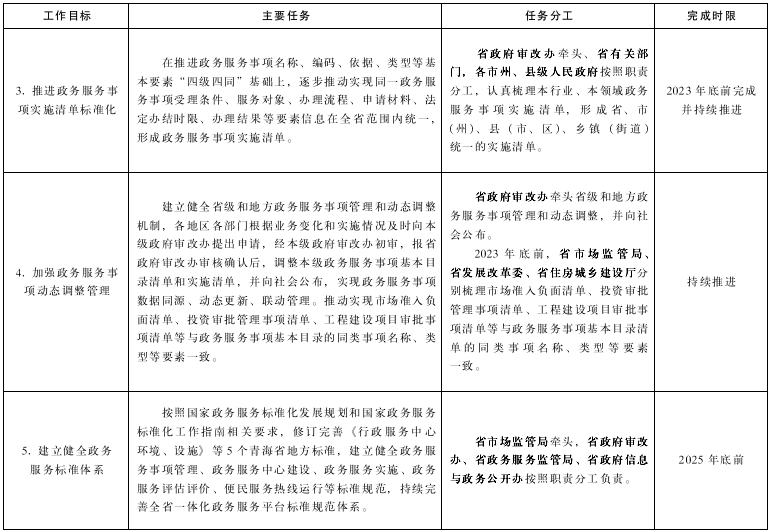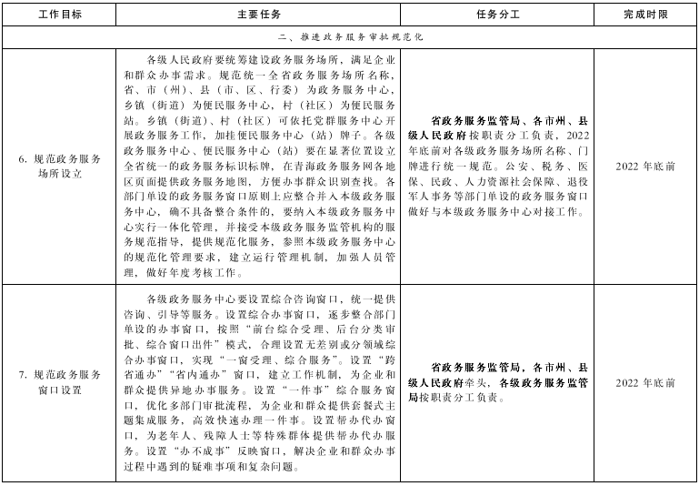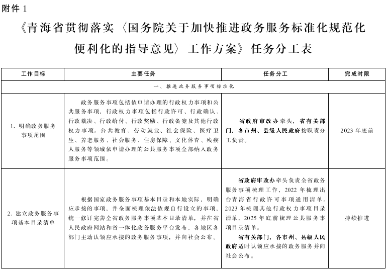 附件:1.《青海省貫徹落實(shí)〈國務(wù)院關(guān)于加快推進(jìn)政務(wù)服務(wù)標(biāo)準(zhǔn)化規(guī)范化便利化的指導(dǎo)意見〉工作方案》任務(wù)分工表