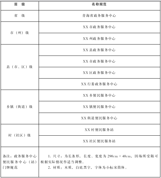 6.規(guī)范政務(wù)服務(wù)場所設(shè)立。各級(jí)人民政府要統(tǒng)籌建設(shè)政務(wù)服務(wù)場所,滿足企業(yè)和群眾辦事需求。規(guī)范統(tǒng)一全省政務(wù)服務(wù)場所名稱,省、市(州)、縣(市、區(qū)、行委)為政務(wù)服務(wù)中心,鄉(xiāng)鎮(zhèn)(街道)為便民服務(wù)中心,村(社區(qū))為便民服務(wù)站。鄉(xiāng)鎮(zhèn)(街道)、村(社區(qū))可依托黨群服務(wù)中心開展政務(wù)服務(wù)工作,加掛便民服務(wù)中心(站)牌子。各級(jí)政務(wù)服務(wù)中心、便民服務(wù)中心(站)要在顯著位置設(shè)立全省統(tǒng)一的政務(wù)服務(wù)標(biāo)識(shí)標(biāo)牌,在青海政務(wù)服務(wù)網(wǎng)各地區(qū)頁面提供政務(wù)服務(wù)地圖,方便辦事群眾識(shí)別查找。各部門單設(shè)的政務(wù)服務(wù)窗口原則上應(yīng)整合并入本級(jí)政務(wù)服務(wù)中心,確不具備整合條件的,要納入本級(jí)政務(wù)服務(wù)中心實(shí)行一體化管理,并接受本級(jí)政務(wù)服務(wù)監(jiān)管機(jī)構(gòu)的服務(wù)規(guī)范指導(dǎo),提供規(guī)范化服務(wù),參照本級(jí)政務(wù)服務(wù)中心的規(guī)范化管理要求,建立運(yùn)行管理機(jī)制,加強(qiáng)人員管理,做好年度考核工作。(牽頭單位:省政務(wù)服務(wù)監(jiān)管局;責(zé)任單位:省有關(guān)部門,各市州、縣級(jí)人民政府;完成時(shí)限:2022年底前)