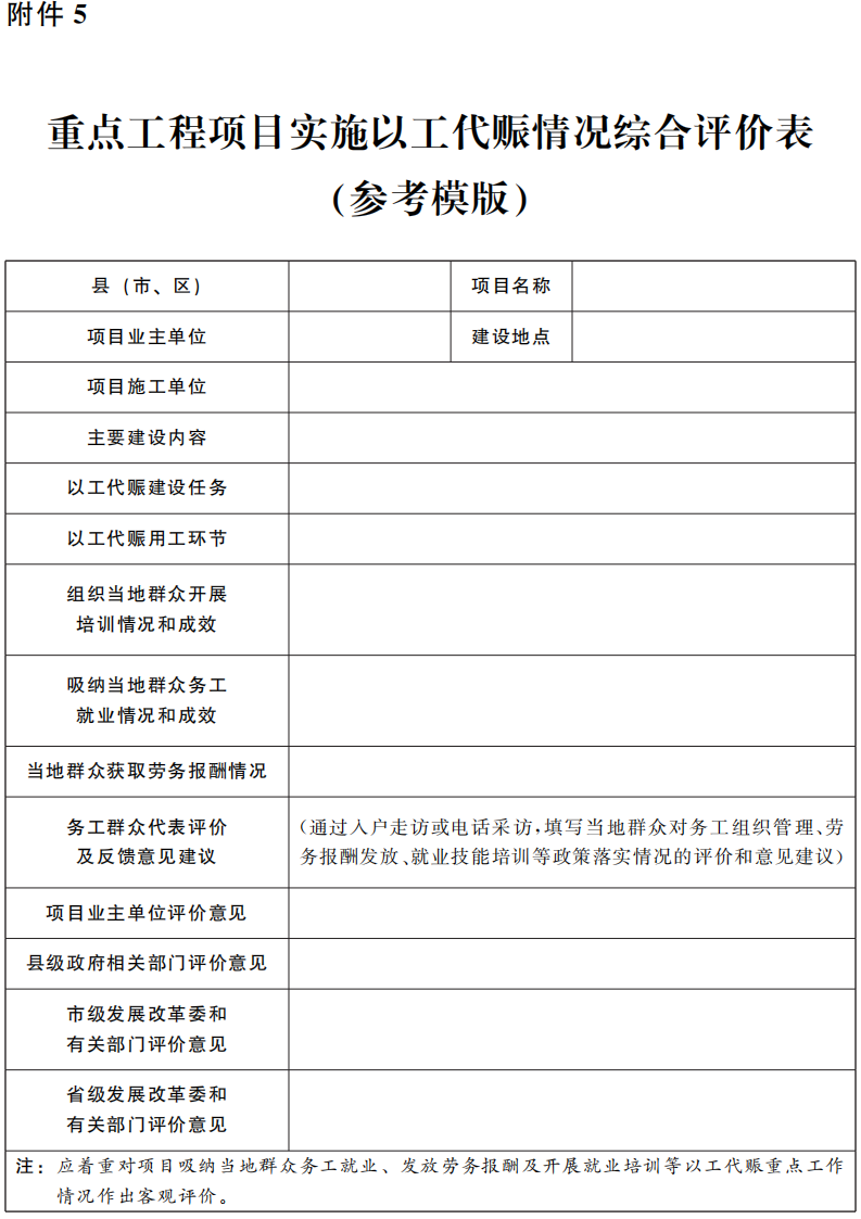 5.重點(diǎn)工程項(xiàng)目實(shí)施以工代賑情況綜合評(píng)價(jià)表(參考模版)