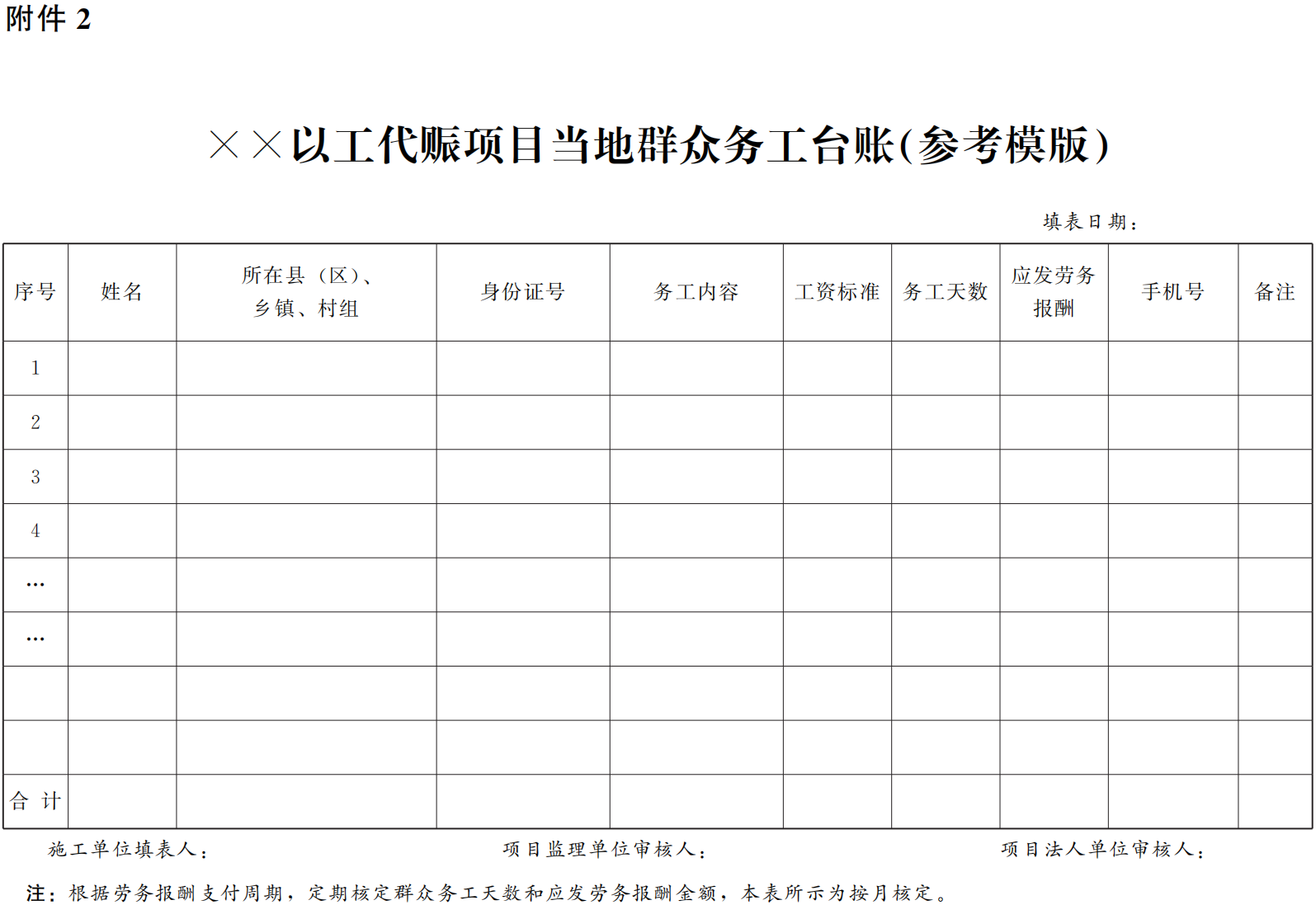 2.××以工代賑項(xiàng)目當(dāng)?shù)厝罕妱?wù)工臺(tái)賬(參考模版)