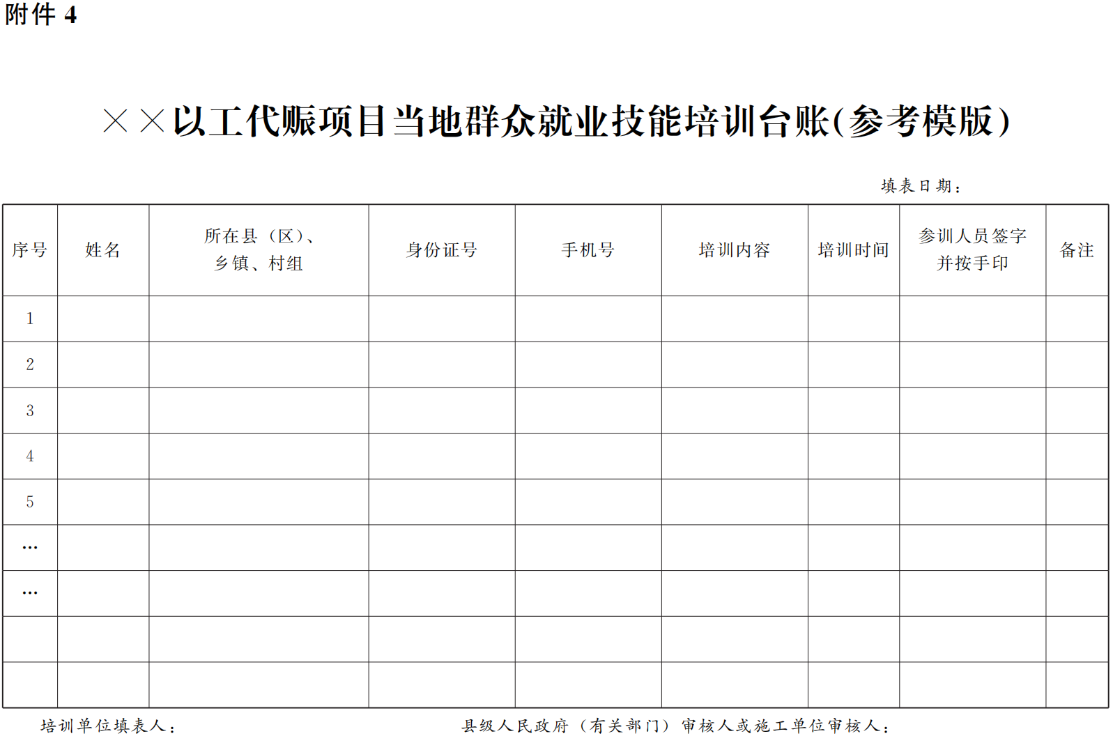 4.××以工代賑項(xiàng)目當(dāng)?shù)厝罕娋蜆I(yè)技能培訓(xùn)臺(tái)賬(參考模版)