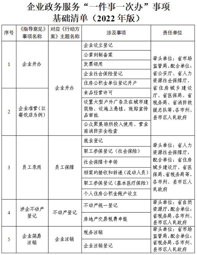 附件:1.企業(yè)政務(wù)服務(wù)“一件事一次辦”事項(xiàng)基礎(chǔ)清單(2022年版)