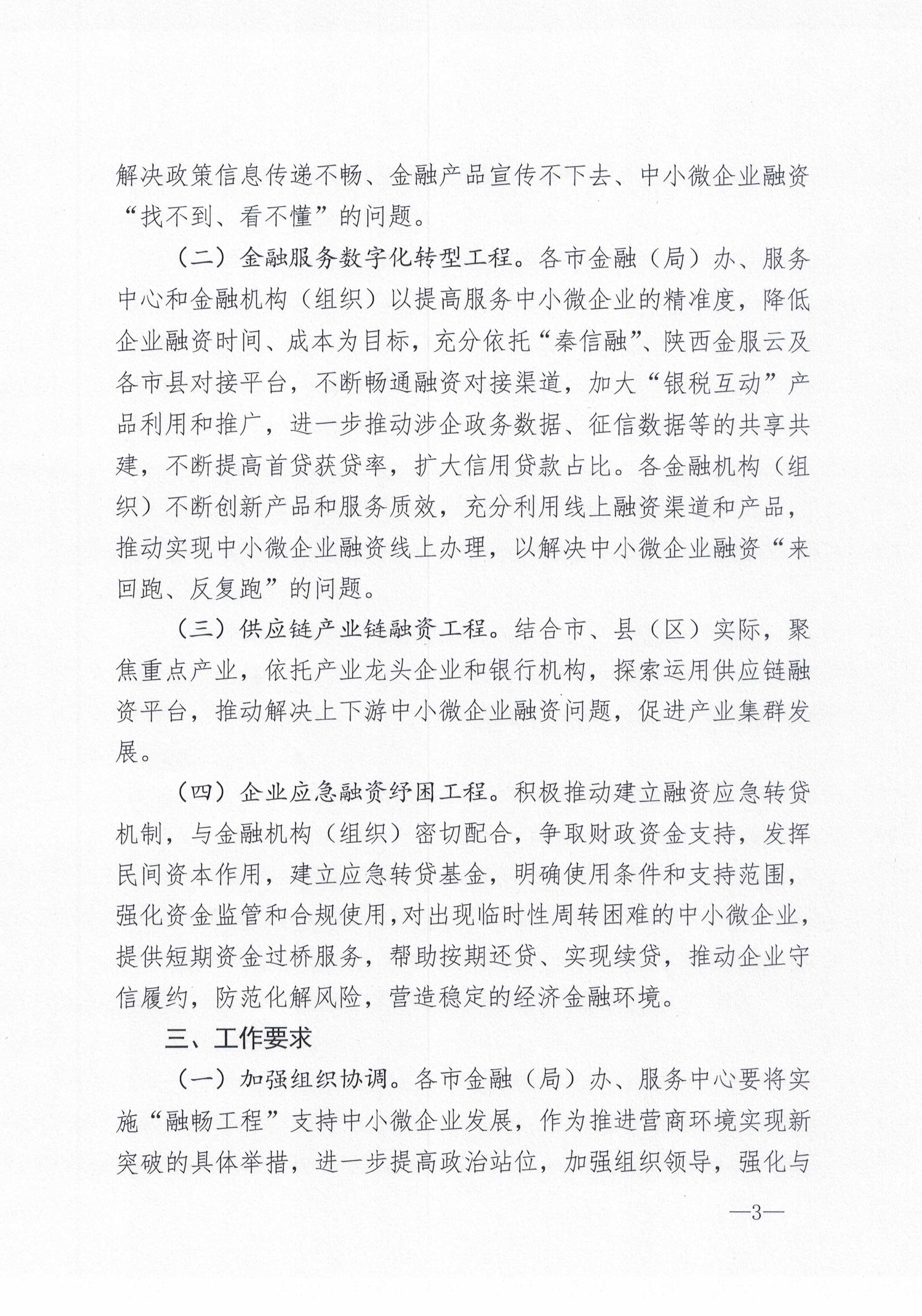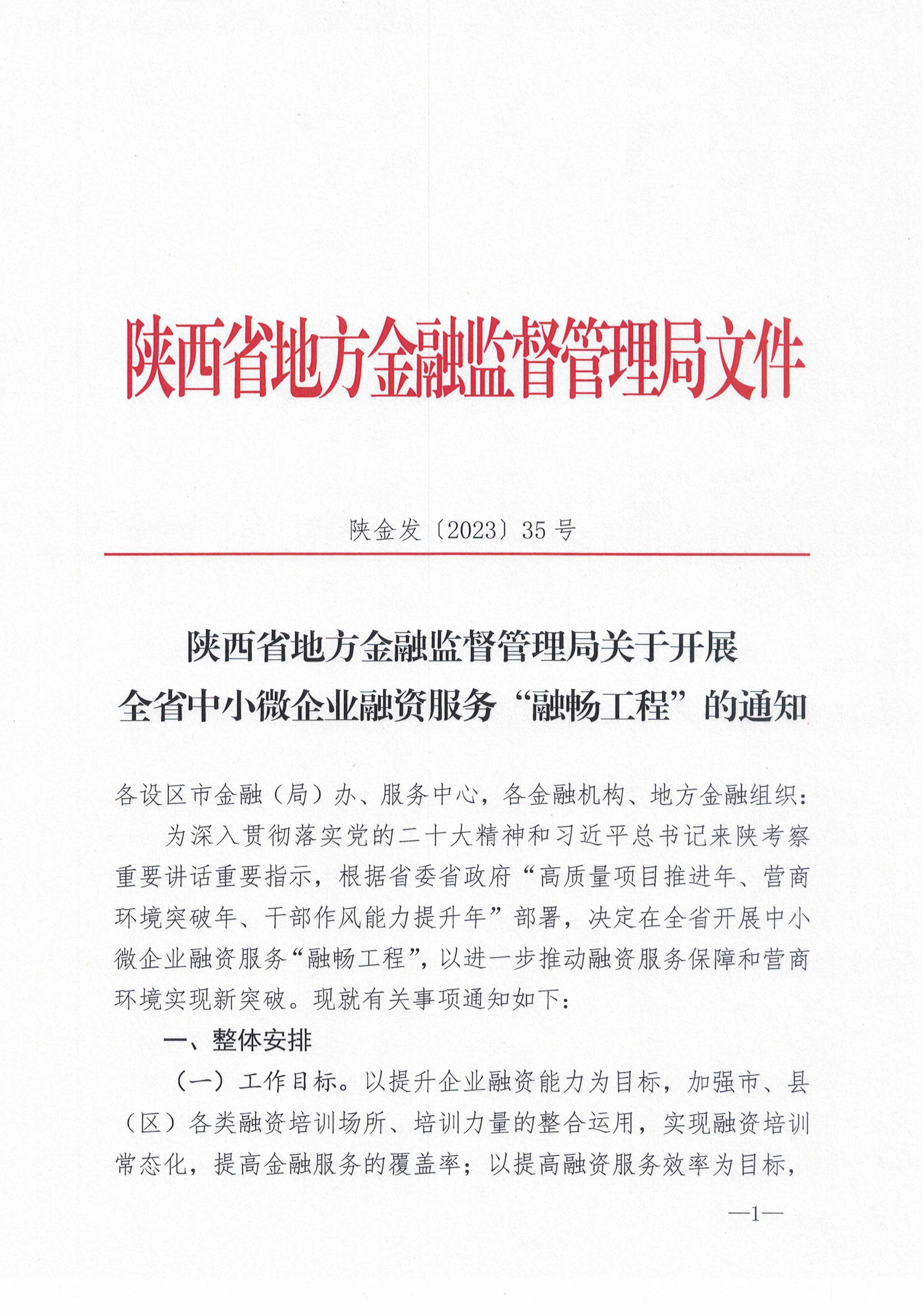 陜西省地方金融監(jiān)督管理局關(guān)于開展全省中小微企業(yè)融資服務(wù)“融暢工程”的通知