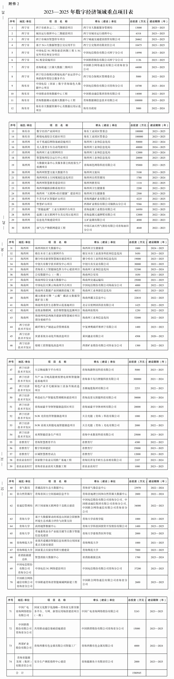 2.2023—2025年數(shù)字經(jīng)濟(jì)領(lǐng)域重點項目表