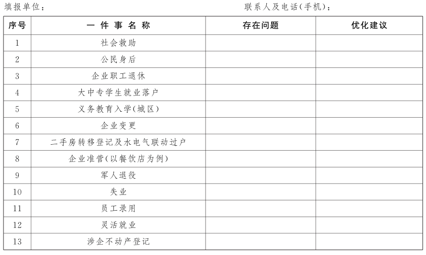 第一批“一件事一次辦”優(yōu)化建議表