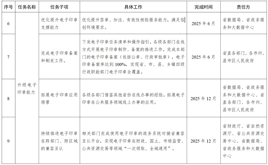 2.升級(jí)電子印章應(yīng)用能力。升級(jí)電子印章在線審批、統(tǒng)一授權(quán)、統(tǒng)一核驗(yàn)、電子證照加注、兼容互認(rèn)等功能及信創(chuàng)環(huán)境電子印章應(yīng)用能力,滿足電子證照和各類政務(wù)服務(wù)場(chǎng)景下的電子印章應(yīng)用。各級(jí)各部門應(yīng)完成本部門的電子印章備案申請(qǐng)(包括公章、行政審批章),電子印章備案率達(dá)到100%。探索在財(cái)政、自然資源和公共資源交易等領(lǐng)域推進(jìn)電子印章的互信互認(rèn)。