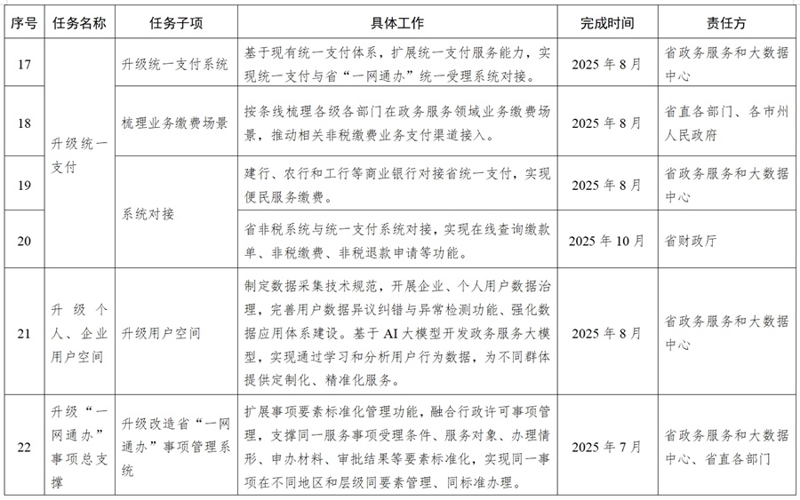 2025年12月31日前,統(tǒng)籌省級(jí)政務(wù)服務(wù)公共平臺(tái)基礎(chǔ)能力建設(shè)和保障,滿足全省數(shù)字政務(wù)公共基礎(chǔ)能力“總支撐”需求,通過完善統(tǒng)一身份認(rèn)證、電子證照、電子印章、統(tǒng)一支付、統(tǒng)一用戶中心、應(yīng)用能力開放平臺(tái)、AI大模型等基礎(chǔ)支撐能力,全面支撐全省政務(wù)服務(wù)業(yè)務(wù)應(yīng)用。整合數(shù)字政務(wù)應(yīng)用安全服務(wù)能力,實(shí)現(xiàn)集中監(jiān)控與管理,提升整體安全防護(hù)水平。