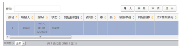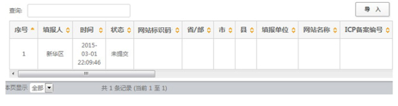 組織單位在收到上報(bào)文件后,使用賬號(hào)和密碼登錄報(bào)送系統(tǒng),在“政府網(wǎng)站和欄目(系統(tǒng))基本信息表”的數(shù)據(jù)管理頁(yè)面中,將上報(bào)文件導(dǎo)入系統(tǒng)。
