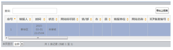 組織單位可使用系統(tǒng)“導(dǎo)出上報(bào)表”功能,導(dǎo)出政府網(wǎng)站和欄目(系統(tǒng))基本信息,并生成excel文件格式的上報(bào)表,打印簽字蓋章后呈報(bào)上級(jí)組織單位。