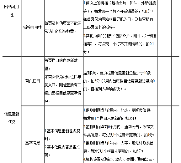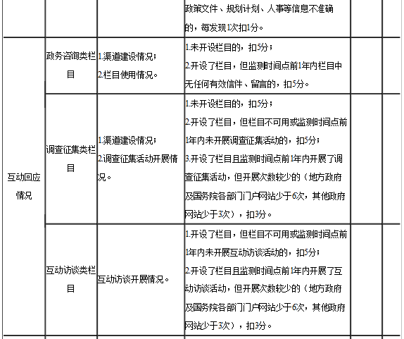 ?。ǘ┢詹閮?nèi)容。按照《全國(guó)政府網(wǎng)站普查評(píng)分表》檢查各政府網(wǎng)站的可用性、信息更新情況、互動(dòng)回應(yīng)情況和服務(wù)實(shí)用情況等。