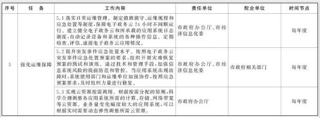 2017年2月前,完成電子政務(wù)云運營和管理、電子政務(wù)云應(yīng)用建設(shè)、遷移和部署以及云安全體系建設(shè)等標準和規(guī)范的制定,完成突發(fā)事件應(yīng)急處置預案編制。
