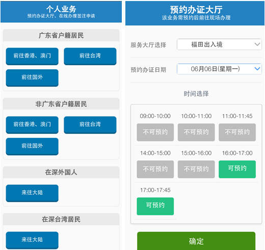 微信城市服務(wù)-深圳出入境業(yè)務(wù)辦理-預(yù)約系統(tǒng)(來(lái)源:微信城市服務(wù))