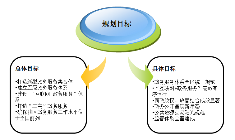 為提高我區(qū)政務(wù)服務(wù)水平,我區(qū)十三五規(guī)劃的總體目標(biāo)是從自治區(qū)、市、縣(市、區(qū))到鄉(xiāng)鎮(zhèn)(街道)、村(社區(qū))村(社區(qū))五個不同級別的行政區(qū)劃入手,建設(shè)和完善“高標(biāo)準(zhǔn)、高品質(zhì)、高效能”的“互聯(lián)網(wǎng)+政務(wù)服務(wù)”體系,其功能包括政務(wù)公開、行政審批、公共服務(wù)等綜合服務(wù)。此總體目標(biāo)的制定主要參照我區(qū)行政區(qū)域五級劃分和政務(wù)服務(wù)工作惠民需全面的實際情況,和此目標(biāo)實踐并達(dá)成預(yù)期成效的可能性制定,較科學(xué)合理的明確了新時期、“新常態(tài)”下我區(qū)政務(wù)服務(wù)的努力方向和新型政務(wù)服務(wù)體系的提供的新型服務(wù),讓政府工作人員明確新的工作方向、內(nèi)容和工作目標(biāo)。這一總體目標(biāo)符合我區(qū)黨政機關(guān)始終堅持黨全心全意為人民服務(wù)的宗旨,建設(shè)服務(wù)型、創(chuàng)新型政府的理念,真正為人民辦實事和改善民生的決心。